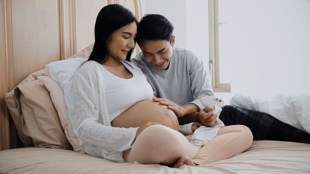 At night, when you are going to sleep, touch and rub your belly and talk to your baby. Talk about what you did or how it felt to have her with you all day. Talk about having a wonderful night’s sleep, resting, growing, and feeling loved.