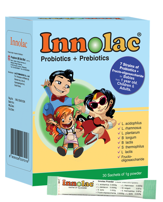 Innolac Probiotic & Prebiotic is suitable for everyone, from babies aged one year to children and adults. It comes in a convenient powder form that easily dissolves in the mouth and can be taken with or without water, juices, or even milk.