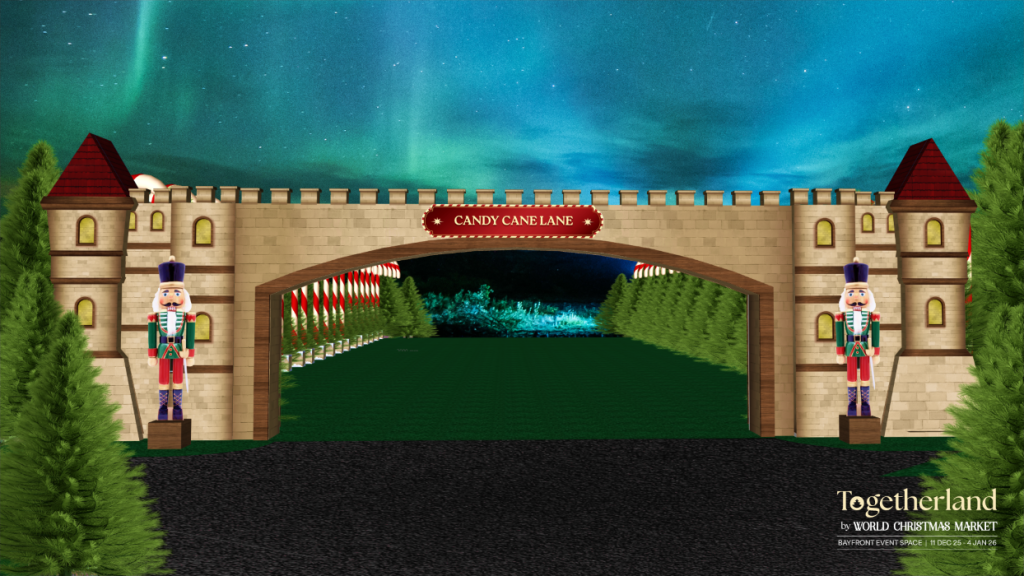 With 19 days left to experience Togetherland, a must-see highlight is the Gateway of Stars – a shimmering light tunnel lined with kinetic sculptures and twinkling arches that transports visitors into the festive grounds. The journey opens into Constellation Town Square, where an 8-metre real Christmas tree adorned with 1,500 mirrorballs anchors the space as a star-like centrepiece.