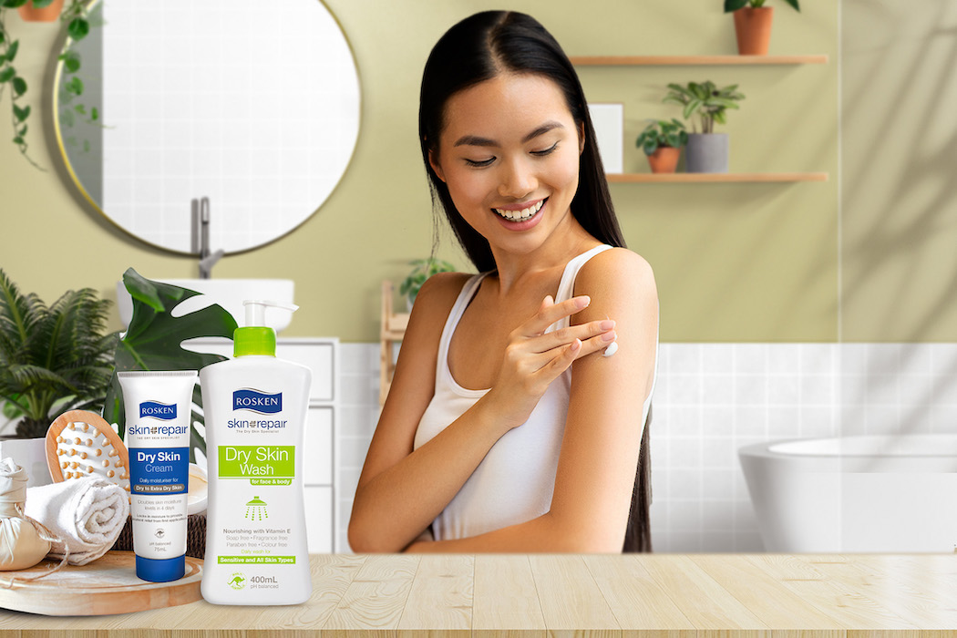 But changing your body wash alone is not enough to prevent dryness and protect your skin. Moisturising your skin regularly is an important step in your skin care regime. Rosken Dry Skin Cream is clinically proven to treat dry skin issues by forming a protective layer to seal in moisture, while repairing and soothing dry skin in 30 minutes. Two of its star ingredients include: