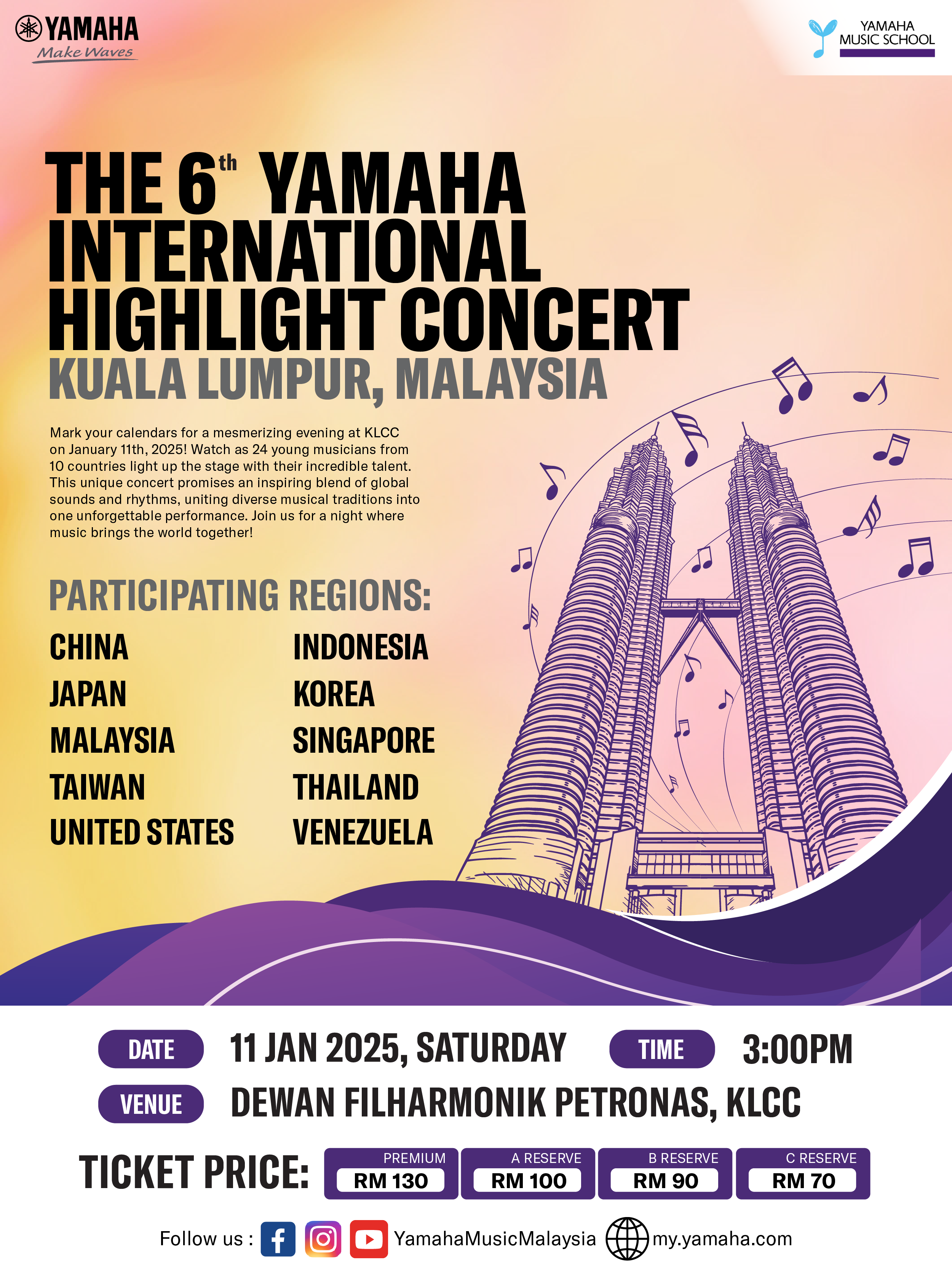 Get ready for the Yamaha International Highlight Concert, where talent meets creativity! From classical piano to original student compositions and pop music performances, this event has it all. Watch as these talented students improvise on the spot, turning a simple melody into a full-blown performance, showcasing Yamaha’s unique focus on creativity. After an exciting run in Jakarta, this year’s concert hits Kuala Lumpur, Malaysia, and promises to be an unforgettable experience!