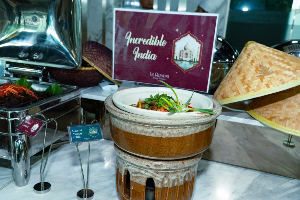 The trail which began in the Middle East had the Lamb Mandi and some of the Middle Eastern dips and breads. The journey continued to Indonesia, featuring the rich flavours of Makassar-style Beef Rendang, Udang Bakar, and Indonesian Chicken Skewers. From there, the exploration ventured to the Far East, where Assorted Sushi became a crowd favoriteThere was also very juicy tender Teriyaki Chicken. Heading on to India, there was the coconut milk appam (traditional pancakes from the South), with chicken varuval and the General Manager’s family recipe of Kerala Tuna Cutlets. How could one resist the Tandoori items – a must-have!