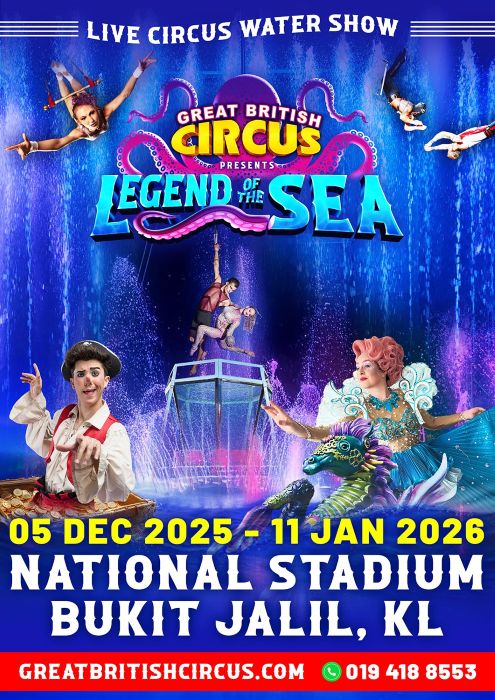 This year’s theme transports audiences into a world of oceanic wonder, pirates, and mermaids, blending classic circus artistry with dazzling theatrical storytelling. The show is set to run across multiple locations in Malaysia, starting in Melaka before making its way to Johor, Kuala Lumpur, and other key cities. With its one-of-a-kind water stage and larger-than-life performances, Legend of the Sea is being hailed as the circus’s most ambitious production yet.