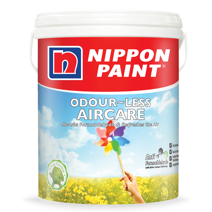 - Choose an Anti-Formaldehyde Paint; Nippon Paint’s Odour-Less AirCare is an anti-formaldehyde interior emulsion that contains Active Carbon Technology, which will continuously absorb harmful formaldehyde from the air and convert into water vapour, resulting in clean fresh air. Besides having ultra-low VOCs and odour, this environmentally friendly paint has superior washability properties, anti-bacterial properties and does not contain lead and mercury. It is recommended to be used in eco-sensitive commercial and residential areas such as hospitals, schools, hotels and homes.