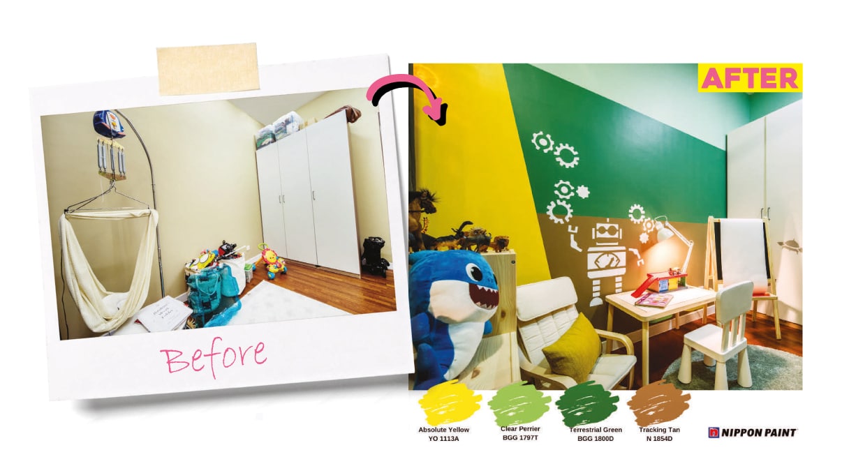 - The focus of the transformation of this room is all about creating a conducive environment for the kid to excel in, by using colours that promote study performance and imagination.