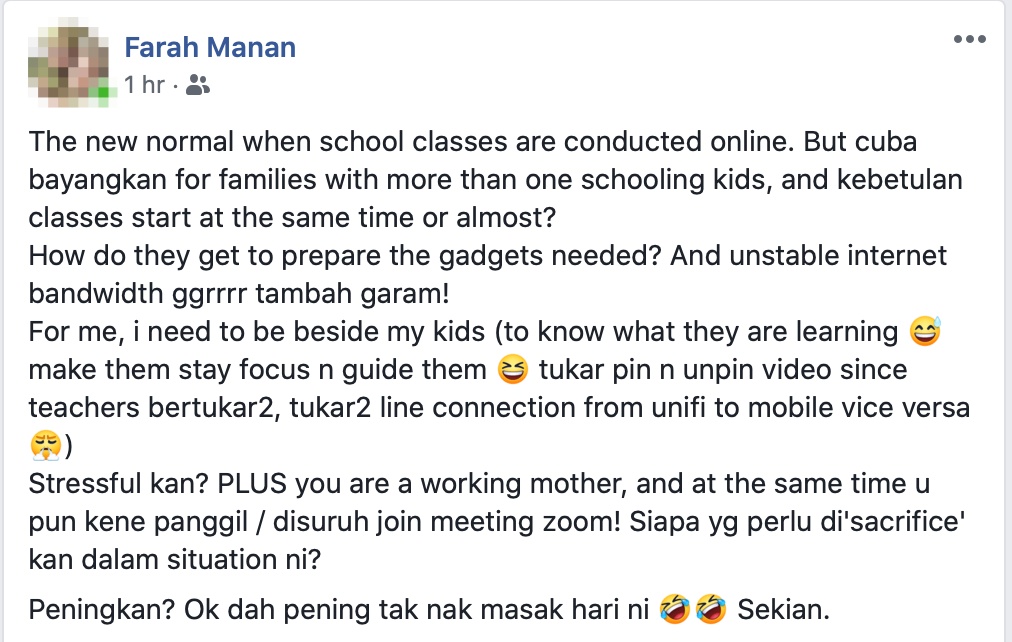 For Mummy Farah Manan, her status really opened some eyes to other parents that do not have more than 1 schooling child.