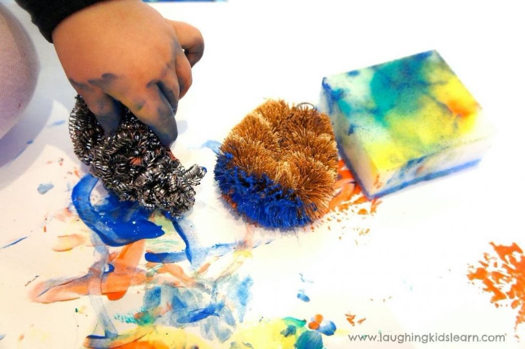 Texture painting is a fun, sensory-rich art experience for kids that allows them to create a variety of textured paint surfaces – no paint brush needed!