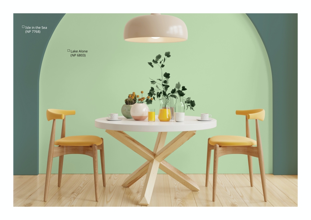 - Bedrooms: Create a tranquil sanctuary with Lake Alone (NP 6803)—a gentle, airy shade that promotes relaxation and rest after a long day of celebrations.