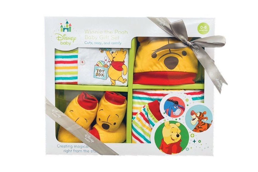 Perfect as a newborn gift, this Winnie The Pooh Unisex 5 Pcs Gift Set includes a long sleeve top, long pants, a set of mittens, a set of booties and a Winnie The Pooh bonnet that is suitable for babies 0-6 months of age.