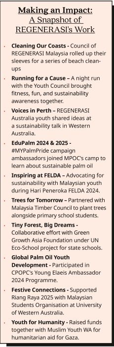 REGENERASI’s most notable initiative, the #MyPalmPride campaign, tackles one of Malaysia’s most misunderstood industries: palm oil. Often painted with a broad brush in international media, Datin Emilia believes the conversation must be more nuanced, and her approach is to start with the youth. The campaign is a groundbreaking effort to cut through the misinformation often spread online, providing young people with the facts.