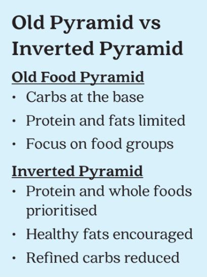 Remember those food pyramid posters in school? The ones with rice, bread and noodles forming that wide, comforting base? Fruits and veggies somewhere in the middle. Protein above. And fats perched at the very top like the “eat sparingly” villain. That is what we grew up with. That is what many of us taught our children.