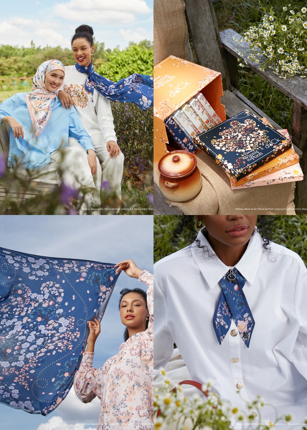 The dUCk Group presents its biggest Disney collaboration with its new Winnie the Pooh x dUCk collection. The brand-new joyful drop that features soft and sweet elements are decorated with Winnie the Pooh’s silhouette as the centrepiece of the design and honeycomb pattern illustrations. The collection entails scarves, ready-to-wear for both adults and dUCklings, bags, candles, drawing pads and cosmetics that will bring you through an everlasting trail of adventure and friendship that lives within the 100-acre woods.