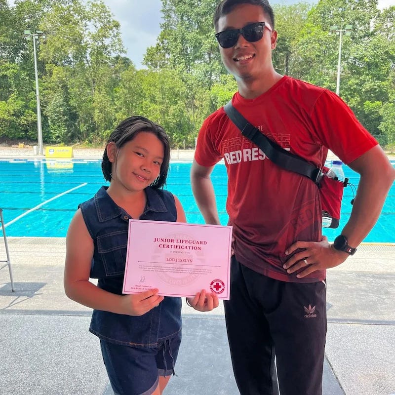 Manigandaa Keertan, Founder and Senior Lifeguard of Red Rescue, noted that while the Junior Lifeguard certification is available for ages 7 to 14, Jesslyn’s performance was exceptional. To qualify, candidates must be able to swim a minimum of 100 meters and demonstrate mastery of fundamental life-saving techniques.