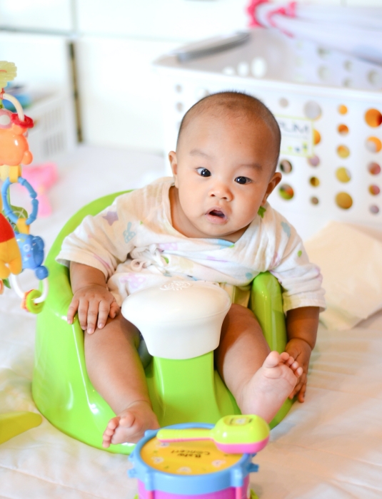 The snug fit of the seat provides support to their hips and trunk muscles, which eliminates the baby’s need to activate their tummy and back muscles to sit up right and stop the baby from building that trunk control and pelvic stability which is required for them to sit independently.