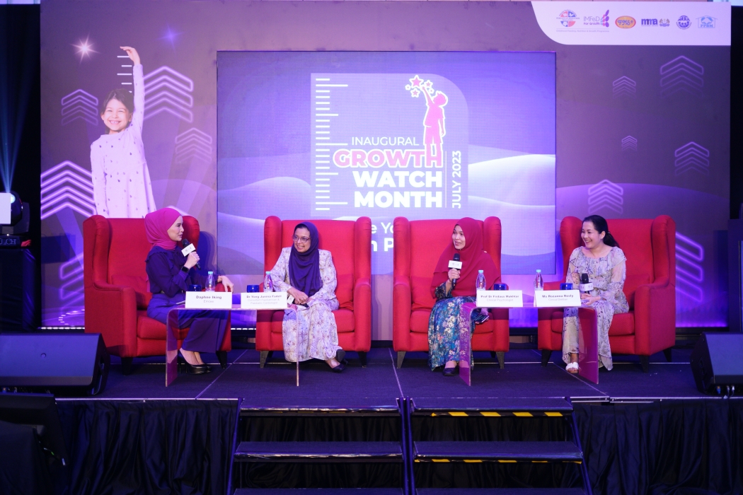 The Growth Watch Month launch ceremony today featured a forum discussing the theme ‘Stunting in Children & Adolescents: Nature or Nurture?’. Celebrity host Daphne Iking moderated the session in which IMFeD For Growth members shared valuable insights and advice. The experts comprised Dr Yong Junina Fadzil, a Consultant Paediatrician and Paediatric Cardiologist; Prof Dr Firdaus Mukhtar, a Clinical Psychologist; and Ms Rozanna M Rosly, a Clinical Dietitian.