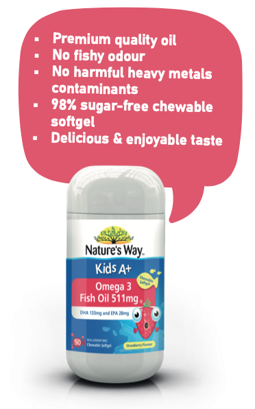 Nature’s Way Omega 3 Fish Oil 511mg is a great supplement to support your child’s development of brain health, cognitive function, learning and information processing.