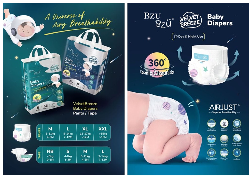 Grab yours today! Diaper Tape is available in sizes NB, S, M and L while Diaper Pants come in M, L, XL and XXL. Find them on BZU BZU’s official website, Lazada, Shopee and selected offline stores across Malaysia at the recommended retail price (RRP) starting at RM42.90.