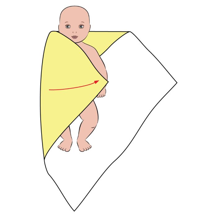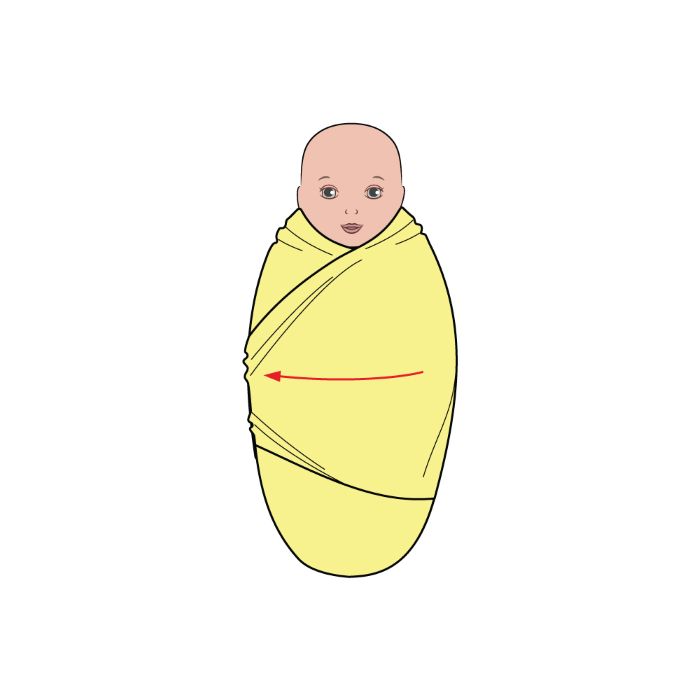 Step 2: Gently bring one side of the blanket across the baby’s chest and tuck it under the opposite arm.