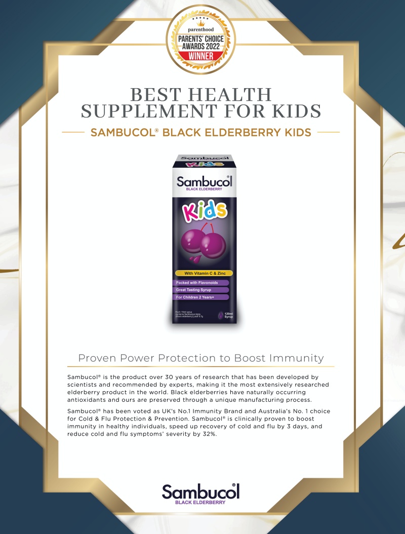 Sambucol® has been voted as UK’s No.1 Immunity Brand and Australia’s No. 1 choice for Cold & Flu Protection & Prevention. Sambucol® is clinically proven to boost immunity in healthy individuals, speed up recovery of cold and flu by 3 days, and reduce cold and flu symptoms’ severity by 32%.