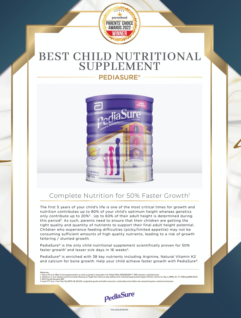The first 5 years of your child’s life is one of the most critical times for growth and nutrition contributes up to 80% of your child’s optimum height whereas genetics only contribute up to 20%2 . Up to 60% of their adult height is determined during this period3. As such, parents need to ensure that their children are getting the right quality and quantity of nutrients to support their final adult height potential. Children who experience feeding difficulties (picky/limited appetite) may not be consuming sufficient amounts of high quality nutrients, leading to a risk of growth faltering / stunted growth.