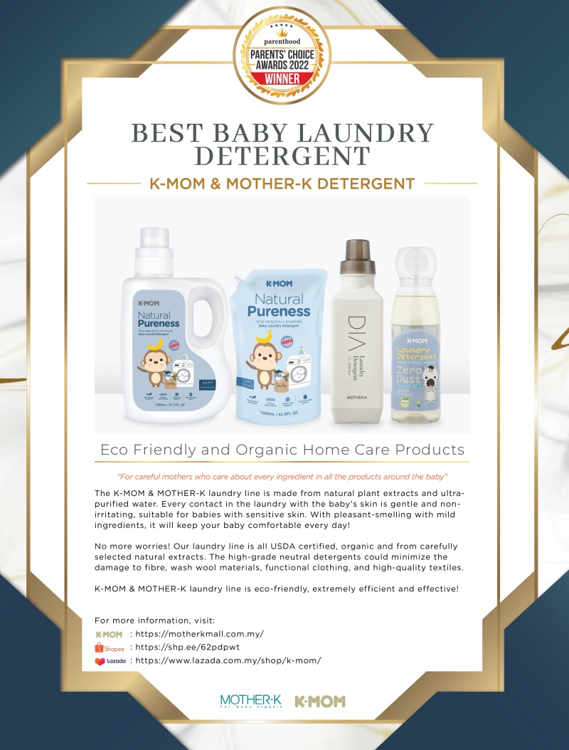 The K-MOM & MOTHER-K laundry line is made from natural plant extracts and ultra-purified water. Every contact in the laundry with the baby’s skin is gentle and non-irritating, suitable for babies with sensitive skin. With pleasant-smelling with mild ingredients, it will keep your baby comfortable every day!