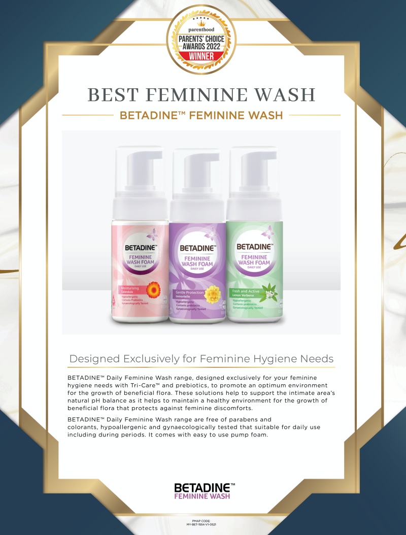 BETADINETM Daily Feminine Wash range are free of parabens and colorants, hypoallergenic and gynaecologically tested that suitable for daily use including during periods. It comes with easy to use pump foam.