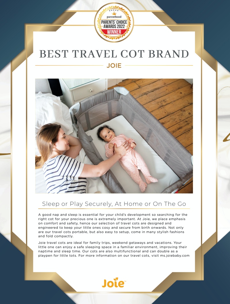 Joie travel cots are ideal for family trips, weekend getaways and vacations. Your little one can enjoy a safe sleeping space in a familiar environment, improving their naptime and sleep time. Our cots are also multifunctional and can double as a playpen for little tots. For more information on our travel cots, visit ms.joiebaby.com