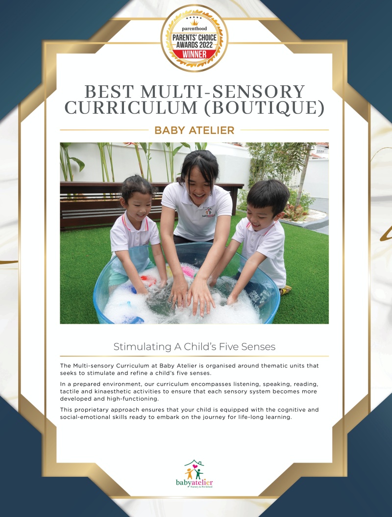 The Multi-sensory Curriculum at Baby Atelier is organised around thematic units that seeks to stimulate and refine a child’s five senses.