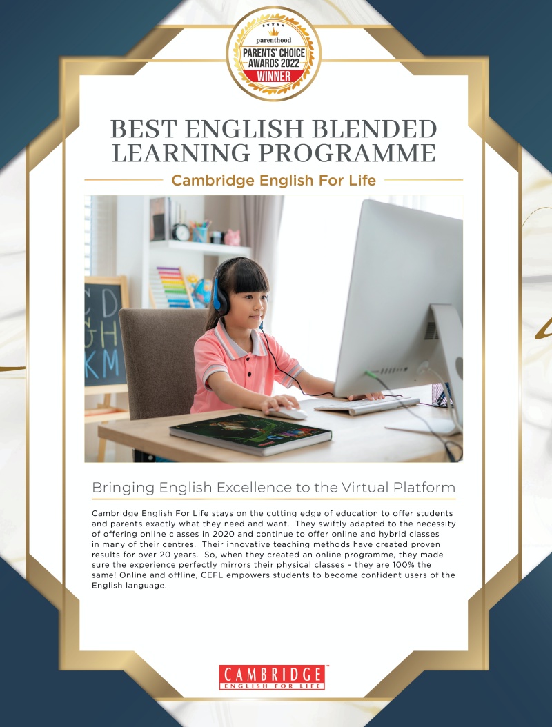 Cambridge English For Life stays on the cutting edge of education to offer students and parents exactly what they need and want. They swiftly adapted to the necessity of offering online classes in 2020 and continue to offer online and hybrid classes in many of their centres. Their innovative teaching methods have created proven results for over 20 years. So, when they created an online programme, they made sure the experience perfectly mirrors their physical classes – they are 100% the same! Online and offline, CEFL empowers students to become confident users of the English language.