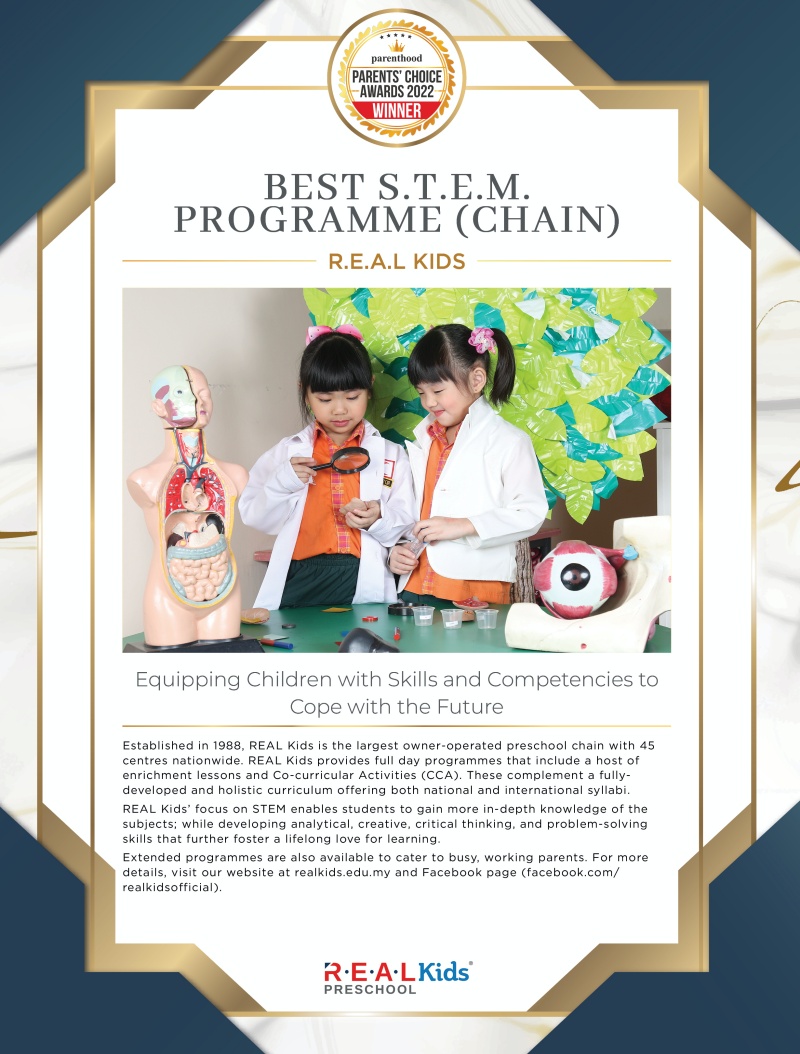 Extended programmes are also available to cater to busy, working parents. For more details, visit our website at realkids.edu.my and Facebook page (facebook.com/realkidsofficial).