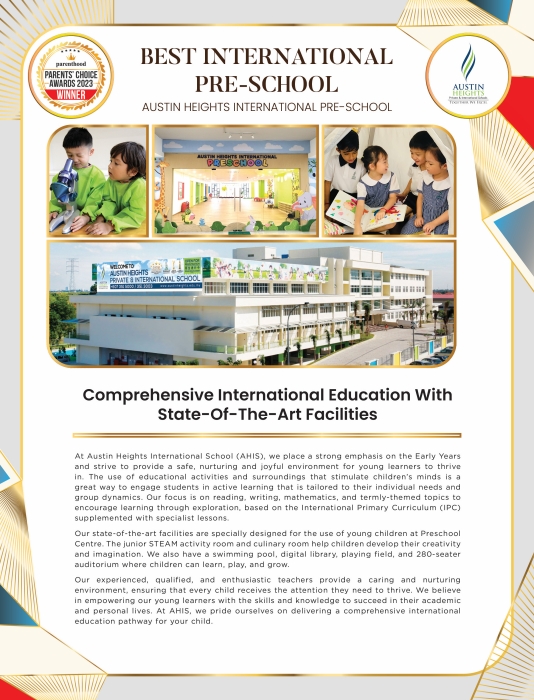At Austin Heights International School (AHIS), we place a strong emphasis on the Early Years and strive to provide a safe, nurturing and joyful environment for young learners to thrive in. The use of educational activities and surroundings that stimulate children’s minds is a great way to engage students in active learning that is tailored to their individual needs and group dynamics. Our focus is on reading, writing, mathematics, and termly-themed topics to encourage learning through exploration, based on the International Primary Curriculum (IPC) supplemented with specialist lessons.