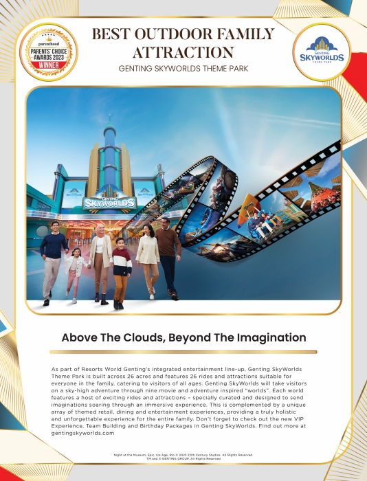 As part of Resorts World Genting’s integrated entertainment line-up, Genting SkyWorlds Theme Park is built across 26 acres and features 26 rides and attractions suitable for everyone in the family, catering to visitors of all ages. Genting SkyWorlds will take visitors on a sky-high adventure through nine movie and adventure inspired “worlds”. Each world features a host of exciting rides and attractions – specially curated and designed to send imaginations soaring through an immersive experience. This is complemented by a unique array of themed retail, dining and entertainment experiences, providing a truly holistic and unforgettable experience for the entire family. Don’t forget to check out the new VIP Experience, Team Building and Birthday Packages in Genting SkyWorlds. Find out more at gentingskyworlds.com.