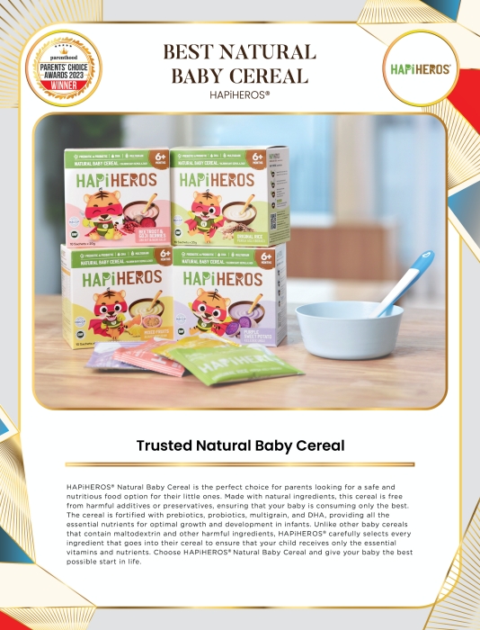 Unlike other baby cereals that contain maltodextrin and other harmful ingredients, HAPiHEROS® carefully selects every ingredient that goes into their cereal to ensure that your child receives only the essential vitamins and nutrients. Choose HAPiHEROS® Natural Baby Cereal and give your baby the best possible start in life.
