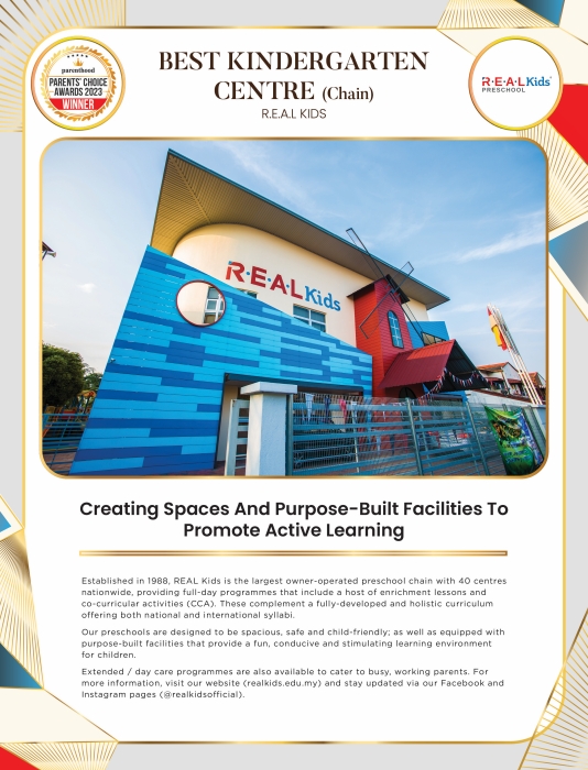 Extended / day care programmes are also available to cater to busy, working parents. For more information, visit our website (realkids.edu.my) and stay updated via our Facebook and Instagram pages (@realkidsofficial).