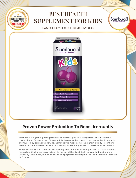 Sambucol® is a globally recognised black elderberry extract supplement that has been a trusted brand for more than 30 years. It is developed by scientist, recommended by experts, and trusted by parents worldwide. Sambucol® is made using the highest quality Haschberg variety of black elderberries with proprietary extraction process to preserve all its benefits.