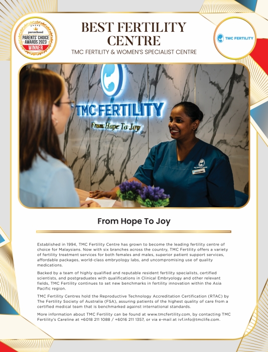More information about TMC Fertility can be found at www.tmcfertility.com, by contacting TMC Fertility’s Careline at +6018 211 1088 / +6016 211 1357, or via e-mail at ivf.info@tmclife.com