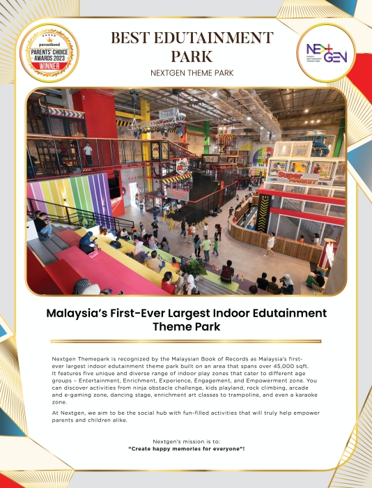 Nextgen Themepark is recognised by the Malaysian Book of Records as Malaysia’s first- ever largest indoor edutainment theme park built on an area that spans over 45,000 sqft. It features five unique and diverse range of indoor play zones that cater to different age groups – Entertainment, Enrichment, Experience, Engagement, and Empowerment zone. You can discover activities from ninja obstacle challenge, kids playland, rock climbing, arcade and e-gaming zone, dancing stage, enrichment art classes to trampoline, and even a karaoke zone.