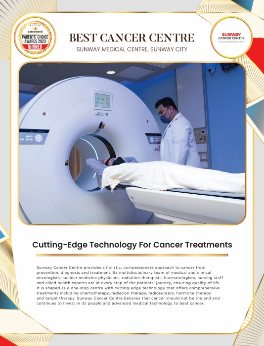 Sunway Cancer Centre provides a holistic, compassionate approach to cancer from prevention, diagnosis and treatment. Its multidisciplinary team of medical and clinical oncologists, nuclear medicine physicians, radiation therapists, haematologists, nursing staff and allied health experts are at every step of the patients’ journey, ensuring quality of life. It is shaped as a one-stop centre with cutting-edge technology that offers comprehensive treatments including chemotherapy, radiation therapy, radiosurgery, hormone therapy and target therapy. Sunway Cancer Centre believes that cancer should not be the end and continues to invest in its people and advanced medical technology to beat cancer.