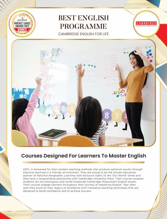 Cambridge English For Life (CEFL) has been Malaysia’s trusted brand for English language centres for more than 20 years. With over 70 centres, they have the largest network of English language centres in Malaysia. They offer internationally-recognised English language programmes for four-year-olds to adults and motivate students to enjoy the learning experience. As proud partners with National Geographic Learning, they are the only authorised centre in Malaysia to use the fascinating ‘Our World’ series that brings the world to the classroom and the classroom to life. CEFL is committed to helping people read, write, listen and speak confidently in UK-standard English.