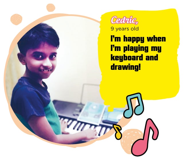 “I’m happy when I’m playing my keyboard and drawing.”